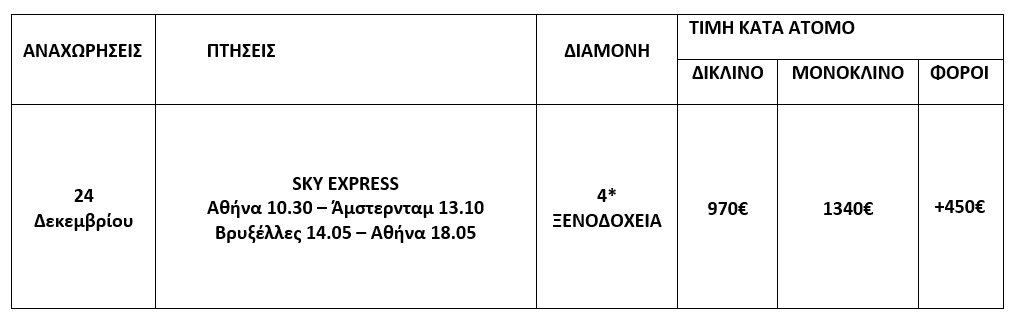 Μοναδική Αναχώρηση: 24 Δεκεμβρίου