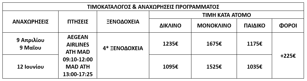 1η μέρα: ΑΘΗΝΑ – ΜΑΔΡΙΤΗ