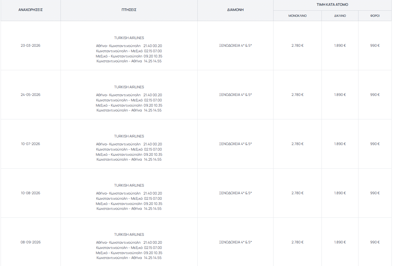 ΜΑΓΕΥΤΙΚΟ ΜΕΞΙΚΟ – 11 ΗΜΕΡΕΣ ΑΝΟΙΞΗ – ΚΑΛΟΚΑΙΡΙ – ΦΘΙΝΟΠΩΡΟ 2026