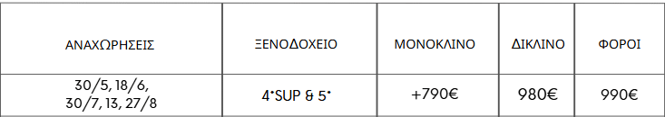 ΑΝΑΧΩΡΗΣΕΙΣ: 30/05, 18/06, 30/07, 13 & 27/08