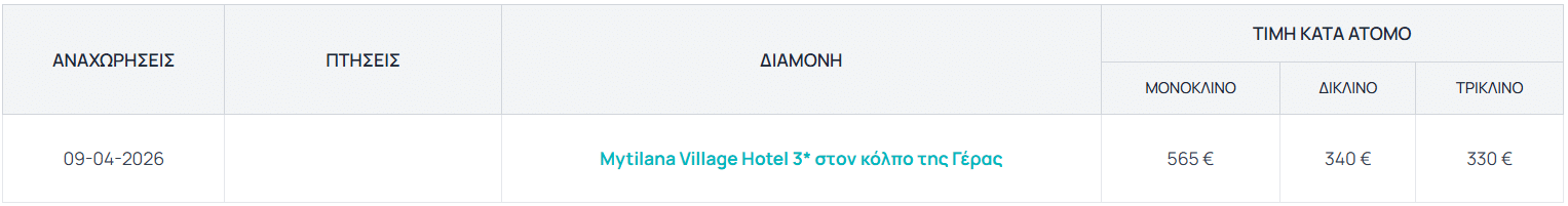 Μοναδική αναχώρηση: 09/04/2026