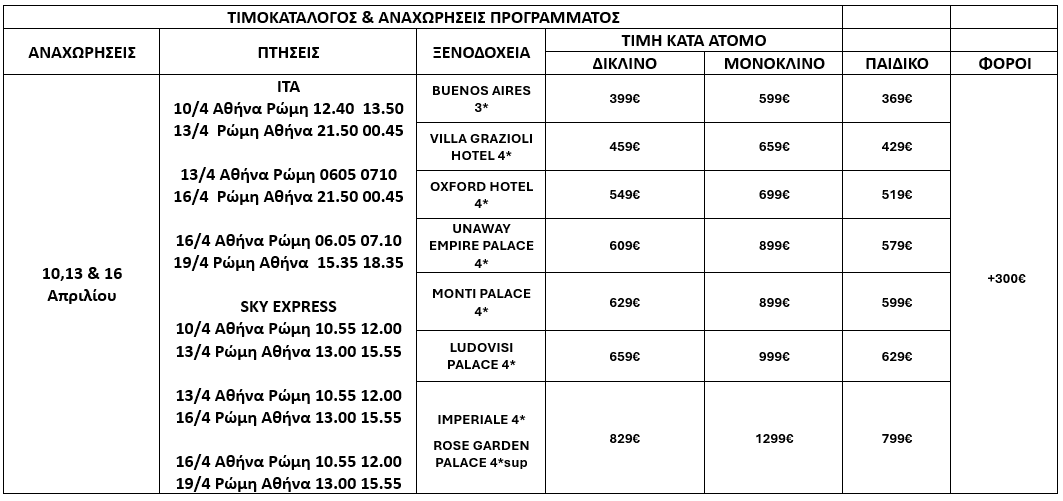 ΠΑΣΧΑ ΣΤΗ ΡΩΜΗ – 4 ΗΜΕΡΕΣ