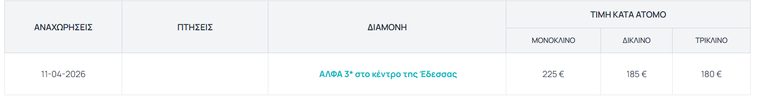 Μοναδική αναχώρηση: 11/04/2026