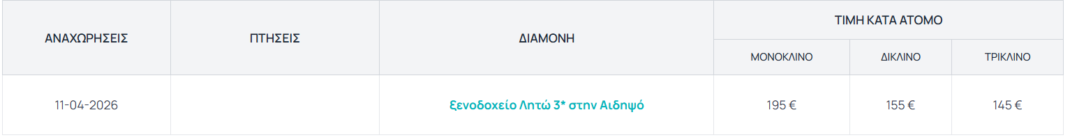 Μοναδική αναχώρηση: 11/04/2026