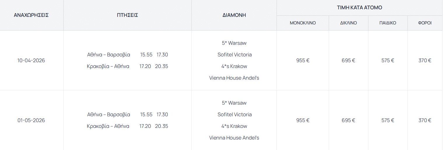 ΒΑΡΣΟΒΙΑ – ΚΡΑΚΟΒΙΑ 5 ΗΜΕΡΕΣ ΠΑΣΧΑ-ΠΡΩΤΟΜΑΓΙΑ 2026